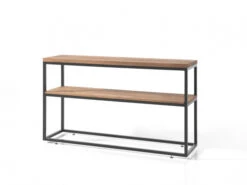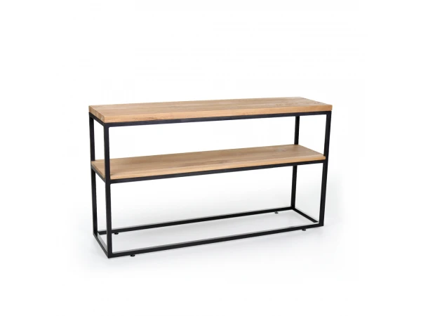 Deze muurtafel bestaat uit massief eikenhout en een metalen onderstel. De combinatie van hout met metaal geeft jouw interieur een moderne en gezellige uitstraling.