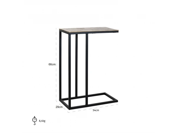 Deze bijzettafel oogt modern en past in elk type interieur, zowel in een landelijk als industrieel interieur. Het onderstel oogt sierlijk en stevig tegelijk. Het tafelblad in de kleur champagne gold brengt een warme, gezellige sfeer in je zithoek. Waar plaats jij deze eyecatcher?