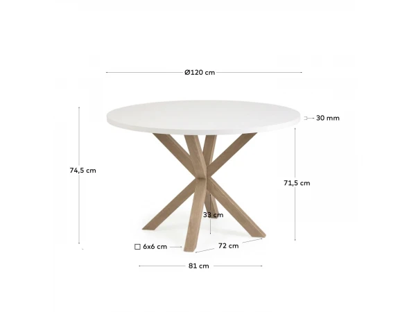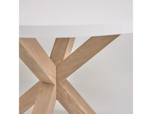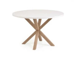 Ronde tafel Argo van Kave Home beantwoordt volledig aan de Scandinavische stijl, met een tafelblad van wit melamine en stalen poot met houteffect. De poot heeft verstelbare dopjes die de poot beschermen en ongelijkheid kunnen corrigeren. Deze ronde tafel heeft een diameter van 120 cm en is hiermee uiterst geschikt voor kleinere ruimtes. Ze is ook beschikbaar in andere kleuren en formaten.