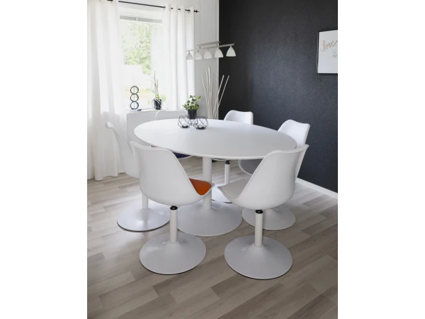 Deze modern ronde tafel komt in twee strakke kleuren: wit en zwart. Deze ronde tafel is een gezellige eettafel perfect voor in de eetkamer of keuken. De tafel is vervaardigd uit het onderhoudsvriendelijke HPL (High Pressure Laminate), dit geeft de tafel een glad oppervlak dat gemakkelijk te reinigen is.