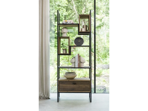 Een room divider breekt een ruimte letterlijk in twee, en kan jouw interieur daardoor een stuk spannender maken! Deze room divider Fresno van Xooon past dankzij de combinatie van hout met zwart metaal erg goed in een stoer en industrieel interieur. Het hout zorgt tegelijk voor een warme uitstraling. De room divider heeft 1 lade, 2 boxen en 4 niches. Ook leuk om te gebruiken als boekenrek of wandrek.