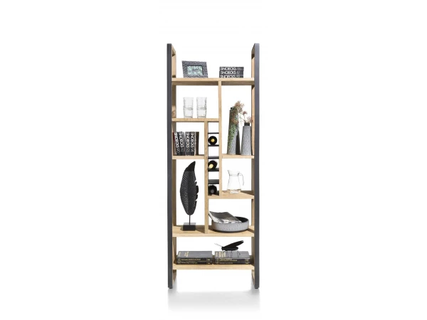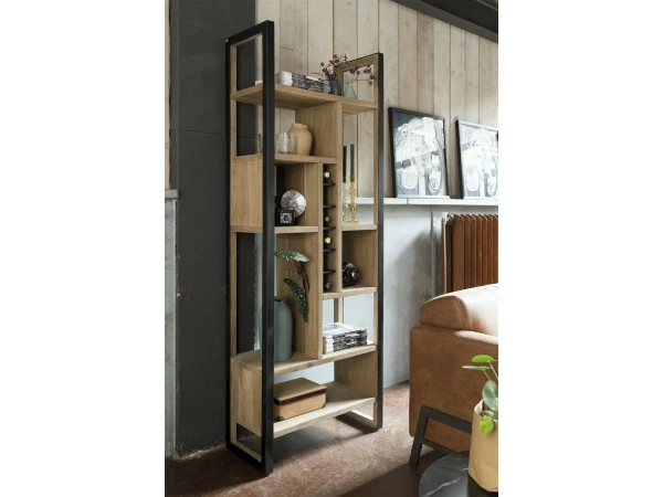 Deze stoere industriÙle roomdivider uit de Metalo collectie van Henders and Hazel wordt getypeerd door een warme en sfeervolle uitstraling. Plaats de roomdivider als open kast tegen een muur of verdeel je ruimte in twee. De roomdivider is gemaakt van eikenfineer in combinatie met metaal. Het bestaat uit 8 niches en heeft 6 vakken waar wijnflessen in passen.