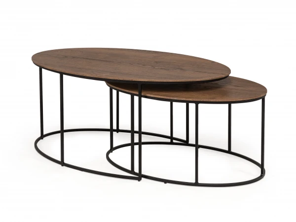 Maxfurn Tauro, stoer en toch zo elegant. Deze 2-delige set salontafels horen perfect thuis in de industriële woonstijl. Het donkerhouten tafelblad en frame in zwart metaal zorgen dan ook voor een stoere toets. En toch geeft het fijne onderstel en en de ovalen vorm ze een elegant en zacht kantje. Deze set salontafels is dan ook gemakkelijk te integreren in elk interieur. Bovendien zijn ze uitschuifbaar, hoe handig!