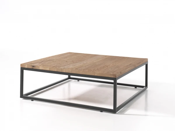 Deze vierkante salontafel heeft een blad in massief eik en een zwart metalen onderstel. De combinatie van hout met metaal geeft jouw interieur een moderne en gezellige uitstraling.