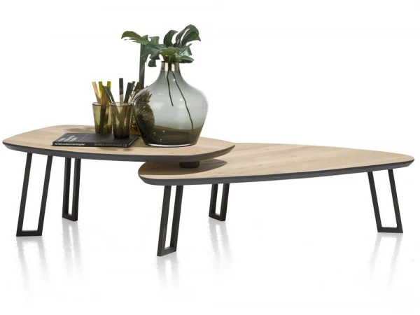 De collectie ‘Darwin’ van Xooon is – net als de wetenschapper Darwin – een koploper van zijn tijd. De combinatie van eikenhout en witgelakte fronten op een stel metalen poten maken hem modieus, eigentijds en zeer geliefd! Darwin is een prachtige eetkamerset om je woonkamer mee in te richten. Deze salontafel is gemaakt uit eikenfineer met 5 zwarte metalen poten. De twee delen van de salontafel kunnen t.o.v. mekaar bewegen zodat je hem kunt inrichten naar eigen wens!