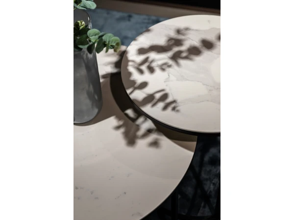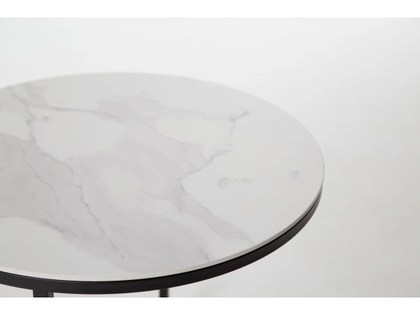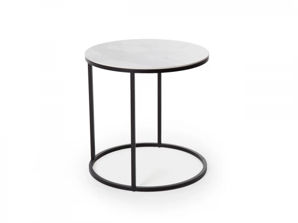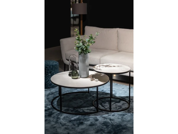 Op zoek naar een bijzettafeltje met een industriële look? Deze salontafel met witte marmerlook en zwarte metalen onderstel is dan een perfecte keuze. Je kan dit tafeltje alleen plaatsen of het kan gecombineerd worden met de grotere versie. Het is mogelijk om ze gedeeltelijk over elkaar te schuiven. Dat vormt ongetwijfeld een mooie eyecatcher in jouw woonkamer.