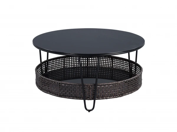 Deze salontafel heeft ongetwijfeld een uniek en opvallend design. Het zwarte glas in combinatie met de zwarte poten zorgt voor een moderne touch. Het geweven rotan rondom de poten geeft de salontafel net iets extra’s. Zo heb je er meteen ook wat extra opbergruimte bij.