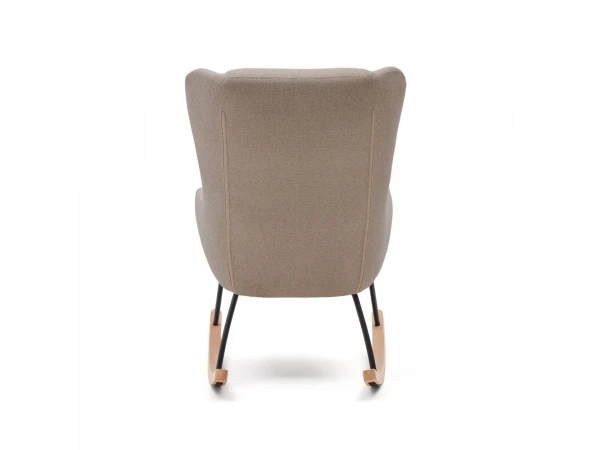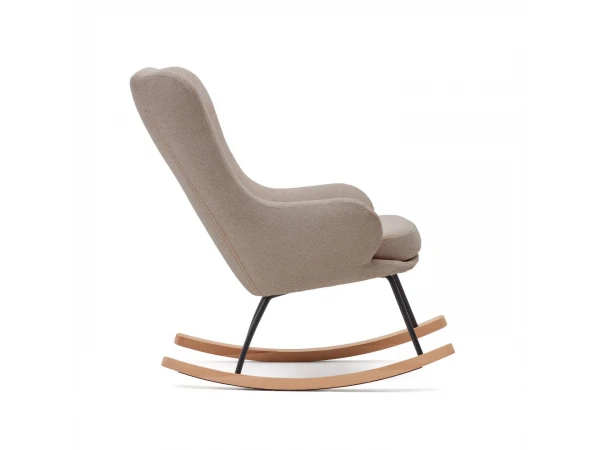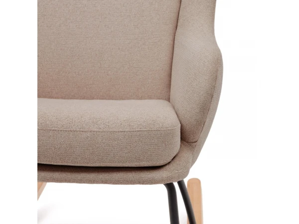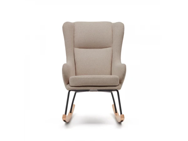 Schommel jezelf naar zalige oorden met schommelstoel Maustin van Kave Home. De schommelstoel is bekleed met stof in de stijl van schapenvacht en heeft een zacht zitkussen. De stalen structuur met zwarte afwerking en sleden in massief beukenhout voegen een eigentijdse en warme touch toe. Perfecte plek om een goed boek te lezen of even heerlijk weg te dromen!