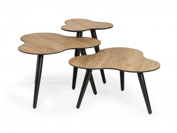 Cas is een set van drie stijlvolle bijzettafels uit de collectie van Coco Maison. Ze zijn gemaakt van zwart MDF en hebben zwarte smalle poten in metaal. De kleinste bijzettafel is 32 cm hoog en de grootste 46 cm. Ideaal voor een modern interieur of je ze nu samen of apart plaatst!