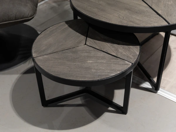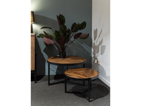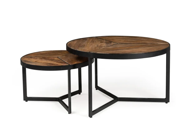 Deze set van 2 moderne bijzettafeltjes hebben een ingewerkt houten tafelblad en een zwart metalen frame. Hierdoor passen ze zo goed als in elke interieurstijl! Deze set tafeltjes kunnen dienen als bijzettafels voor bijvoorbeeld naast je zetel, maar kunnen ook perfect dienen als salontafels. Deze set tafeltjes zijn beschikbaar in twee afwerkingskleuren. Kies jouw favoriete stijl!