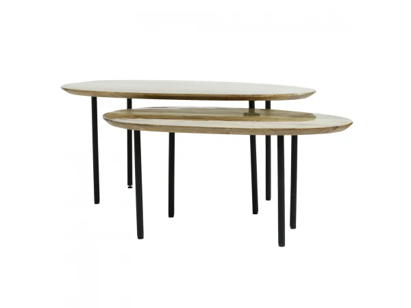 Op zoek naar leuke bijzettafels met een unieke vorm? Dan kan deze set van 2 tafeltjes Olix van PTMD misschien wel iets voor jou zijn. Deze tafeltjes ogen zeer speels door hun ei vorm, en zijn verkrijgbaar in 2 uitvoeringen: black wood en green wood. Ook mogelijk te gebruiken als salontafel. Welke uitvoering verkies jij?