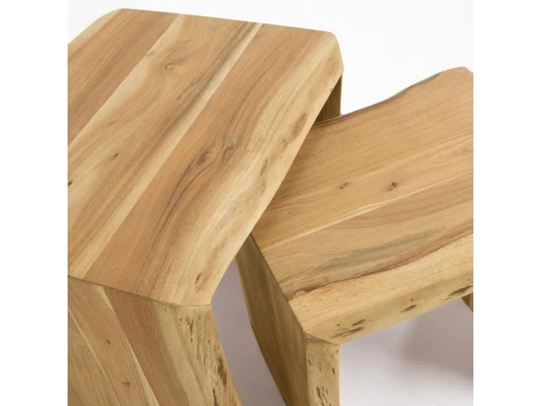 Ontdek de elegante Zuleika bijzettafeltjes van Kave Home – een functionele en stijlvolle aanvulling op jouw interieur! Deze set van 2 bijzettafeltjes is vervaardigd uit massief acaciahout en straalt met zijn prachtige natuurlijke nerf pure schoonheid uit. Met hun strakke lijnen en slim ontwerp zijn ze niet alleen een lust voor het oog, maar bieden ze ook praktische veelzijdigheid!