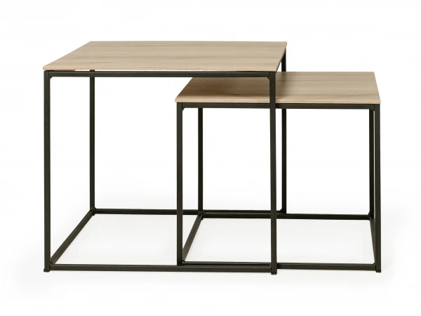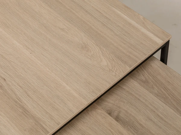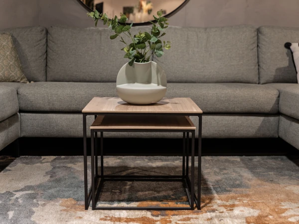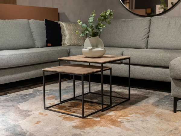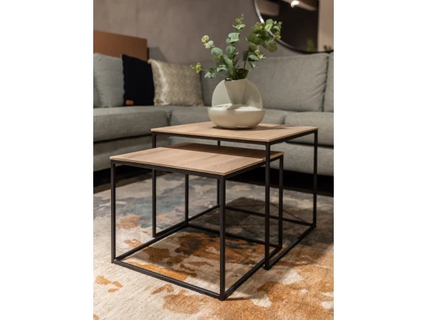 Deze set van 2 salontafeltjes Simon van Maxfurn beantwoorden aan de laatste interieurtrends, waar hout en metaal een belangrijke rol spelen. Het tafelblad is uitgevoerd in Lamulux in de kleur fresh oak, dat de natuurlijke kenmerken van echt hout heeft, onderhoudsvriendelijk en krasbestendig is. Het onderstel in zwart metaal zorgt voor een elegante en eigentijdse uitstraling. Deze salontafels schuif je gemakkelijk in en uit elkaar, afhankelijk van hoeveel tafelruimte je nodig hebt. Trendy én praktisch!