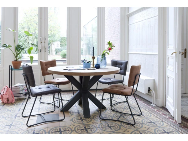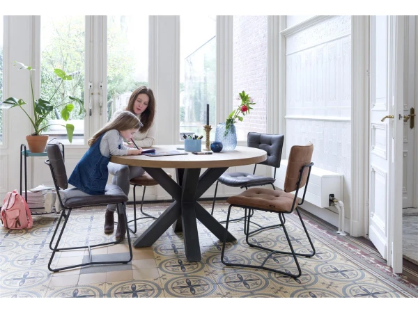 De hippe eetkamerstoel Julien van Henders & Hazel heeft een eigentijdse design look. De stoel is bekleed met Corsica leder en beschikbaar in 3 kleuren. Het zwart metalen frame geeft de stoel een speels tintje.