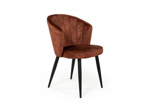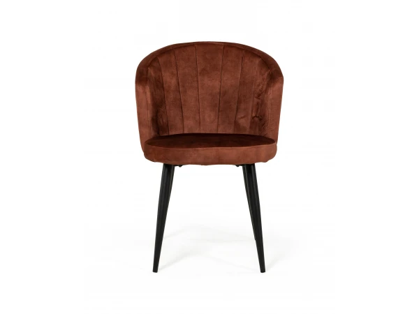 Stoel Loulou heeft een prachtige bekleding in velvet, beschikbaar in de kleuren forest, olive en burnt orange. De ronde rugleuning met verticale verdelingen geeft een hippe vintage uitstraling aan deze stoel, en zit bovendien erg comfortabel. De zwarte poten zorgen voor een moderne toets. Stoel Loulou zorgt ongetwijfeld voor een chique presentatie aan jouw eetkamertafel. Combineer je favoriete kleuren, of ga voor een uniform geheel met je favoriete kleur.