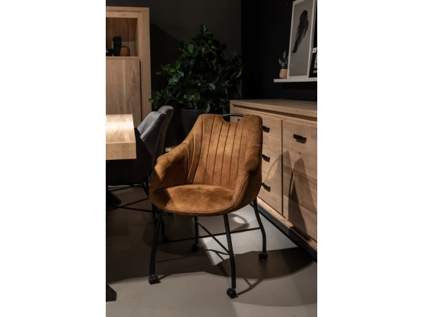 Armstoel Metric van Maxfurn is een veelzijdige stoel waarbij comfort en gebruiksgemak van tel zijn. Deze eetkamerstoel beschikt over een set parketwieltjes waardoor hij makkelijk te verschuiven is. Ook het greepje aan de rugleuning is uitermate handig. De stoel komt in drie verschillende, warme kleuren. Zo maak je de eetkamer nog zo gezellig.