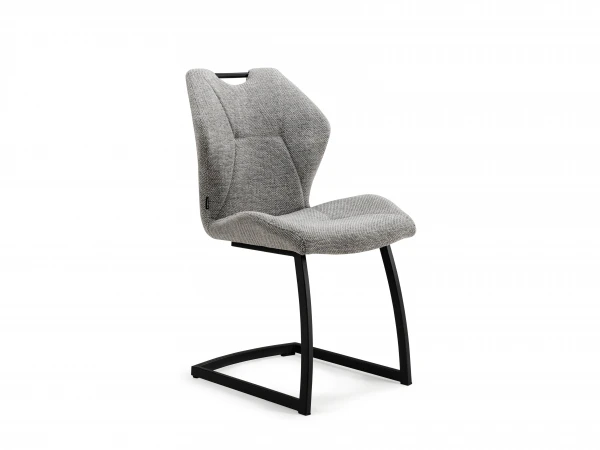 Deze moderne eetkamerstoel Riva heeft een lichtgrijze stof en een zwarte metalen sledepoot. Dankzij de metalen handgreep schuif je hem eenvoudig naar achter en voor. In deze stoel kun je ongetwijfeld comfortabel dineren! Bovendien zijn de neutrale kleuren gemakkelijk te combineren in elk interieur.