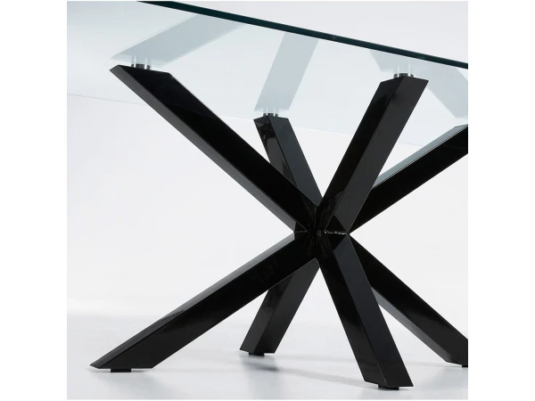 Deze strakke, moderne eetkamertafel vormt een uniek stuk in je interieur! Deze tafel heeft een prachtige stalen designpoot, en een blad uit gehard glas. Deze eettafel van het merk Kave Home is ideaal om te dineren met vrienden of familie. De tafel is beschikbaar in verschillende standaard afmetingen.