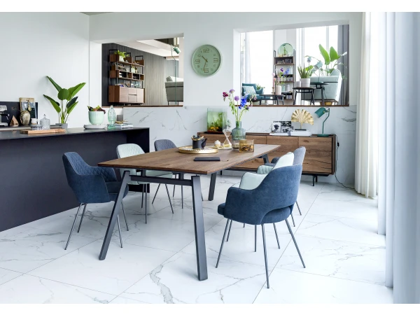 Scandinavisch design met een retro jaren ’50 en ’60 touch: dat is eetkamertafel Halmstad! Een eyecatcher dankzij zijn prachtige tafelblad van wild eikenhout in choco brown kleur dat op een stoer, zwart metalen frame staat. Tafel Halmstad is beschikbaar in diverse afmetingen, ook als uitschuiftafel.