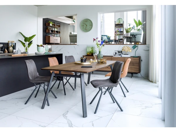 Scandinavisch design met een retro jaren ’50 en ’60 touch: dat is eetkamertafel Halmstad! Een eyecatcher dankzij zijn prachtige tafelblad van wild eikenhout in choco brown kleur dat op een stoer, zwart metalen frame staat. Tafel Halmstad is beschikbaar in diverse afmetingen, ook als uitschuiftafel.