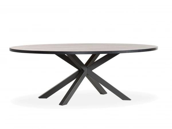 Deze ovalen tafel uit de Scarlet collectie van Maxfurn heeft een tafelblad vervaardigd uit Lamulux en een onderstel uit zwart metaal. Lamulux is een combinatie van vezelplaat en melamine, en gemakkelijk te onderhouden. Lamulux is sterk, hard, licht, en ongevoelig voor krasvorming. Het ziet en voelt aan als echt hout, en vormt een mooi en gemakkelijk te onderhouden alternatief voor massief hout.
