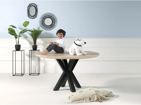 Aanschouw deze prachtige ronde eetkamertafel met massief tafelblad en spinpoot uit de Glasgow collectie. Een ronde tafel is gezellig en geschikt voor zowel kleine gezinnen als uitgebreide etentjes met familie en vrienden. Deze ronde tafel met spinpoot in zwart metaal heeft ook een heel trendy ontwerp. De combinatie van hout met metaal geeft jouw interieur een moderne en gezellige uitstraling.
