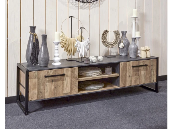 Deze tv-kast met natuurlijke parketlook en frame in grijs staal staat mooi in zowel een landelijk, modern als industrieel interieur. De combinatie van hout en staal geeft zowel warmte als een stoer uiterlijk. Deze moderne tv-kast is beschikbaar in 2 groottes, waarvan dit de grootste uitvoering is met 192 cm breed, 2 deuren en een open vak. Dit tv-meubel behoort tot de collectie Samir van Meubar, met keuze uit een volledige collectie kasten (barkasten, tv-kasten, dressoirs), spiegels, muurplank en verschillende salon- en eetkamertafels. Kies uit deze eetkamer set om jouw woonkamer naar wens in te richten.