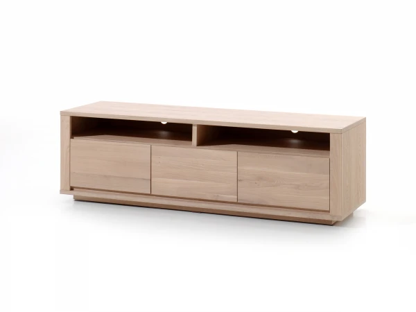 Deze tv-kast is afgebeeld en geprijsd in de kleur Smoked Oak. Voor alle andere uitvoeringen kun je steeds terecht in de toonzaal.