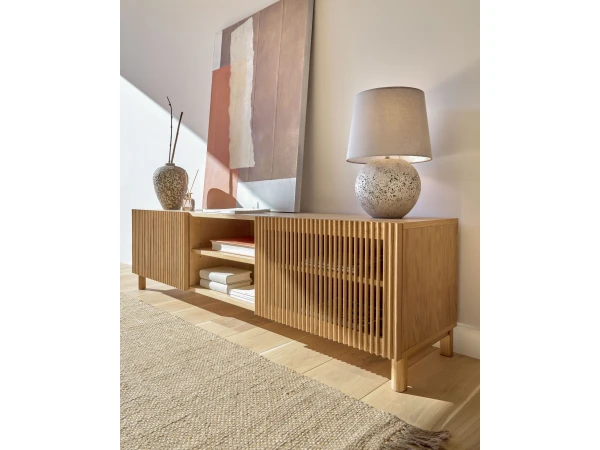 De Beyla collectie van Kave Home combineert de natuurlijke essentie van eikenhout met een strak lijnenspel om een mooi geheel van licht en textuur te creëren. De Beyla woonkamer is gemaakt met oog voor detail, en is uit duurzame materialen vervaardigd. Een uniek design, van hoge kwaliteit, waarvoor Kave Home telkens weer garant staat. Ben jij al overtuigd?