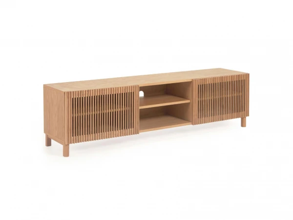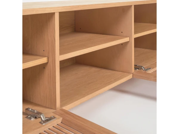 Tv-kast Beyla is een prachtig tv-meubel dat beschikt over twee soft-closing deuren en één open nis. Tv-meubel Beyla heeft een prachtige afwerking in massief eiken en eikenfineer. Je moet je alvast geen zorgen maken om het milieu, want het hout van dit dressoir is gemaakt vrij van vervuiling voor de planeet.