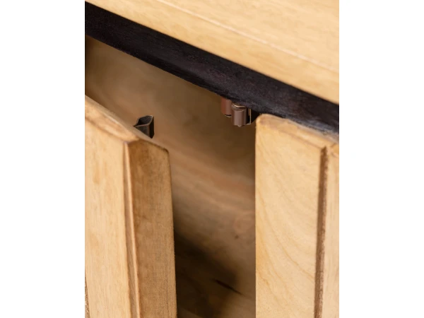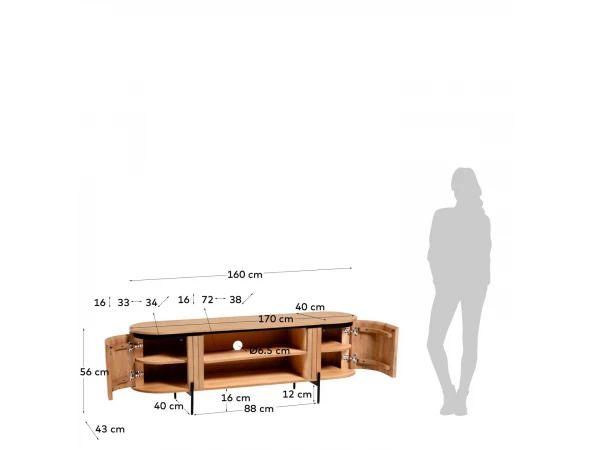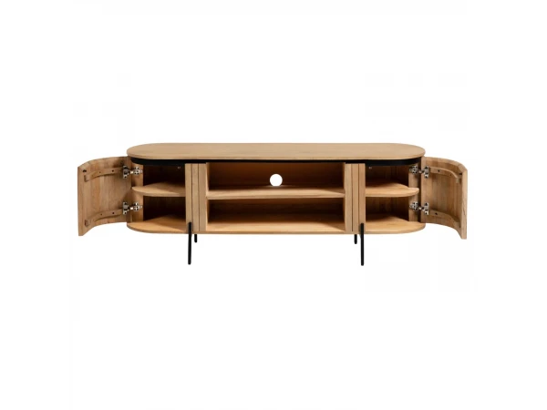Tv-meubel Licia, van Kave Home, heeft een erg natuurlijke en authentieke uitstraling. Deze tv-kast is vervaardigd uit massief, duurzaam mango hout. Deze warme houtsoort werd bovendien met lak afgewerkt om de kleur helemaal op te vrolijken. Dit werd in het ontwerp gecombineerd met mat zwarte stalen details. Samen zorgt dit voor een eigentijds design met retro vibes. Ronde vormen en strakke lijnen vormen de basis van reeks Licia.
