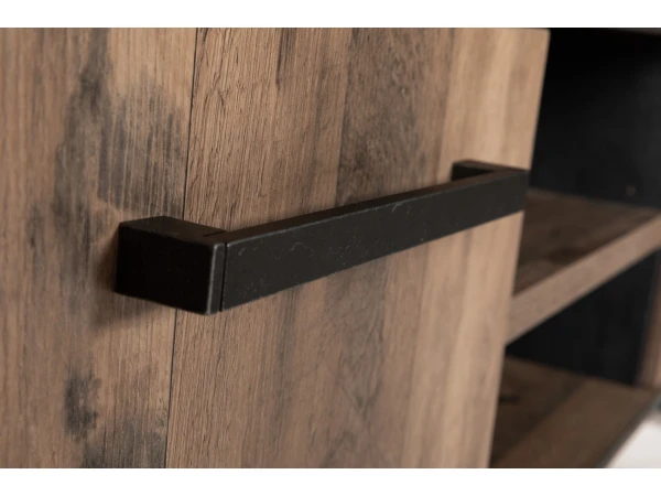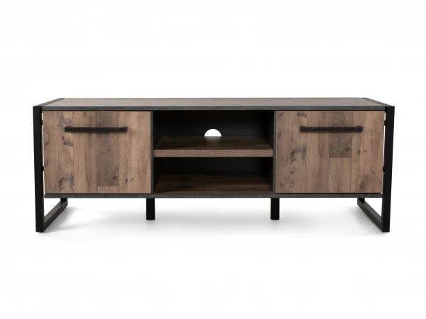 Het Samir tv-meubel in natuurlijke parketlook en grijs staal staat mooi in zowel een landelijk, modern als industrieel interieur. De combinatie van hout en staal geeft zowel warmte als een stoer uiterlijk. Deze landelijke tv-kast is beschikbaar in 2 groottes, waarvan dit de kleinste variant is met een breedte van 145 cm, 2 deuren en 2 open vakken met kabeluitsparing. Bovendien is deze dressoir gemonteerd, waardoor je dit alvast niet meer zelf hoeft te doen. Let wel op de afmetingen voor transport!
