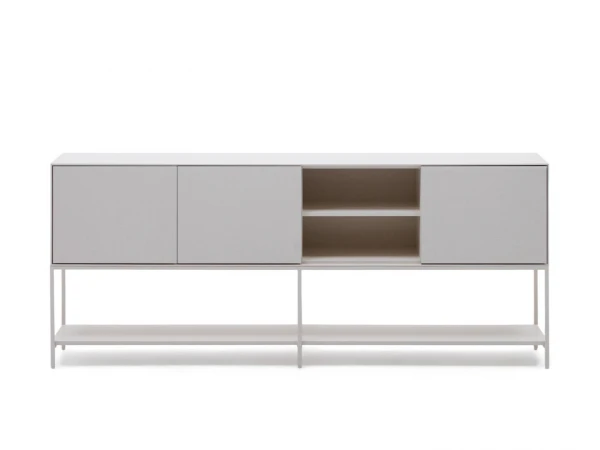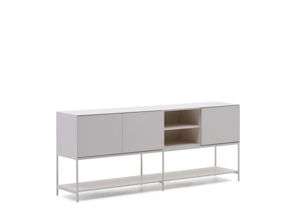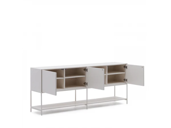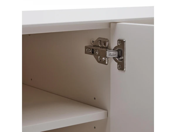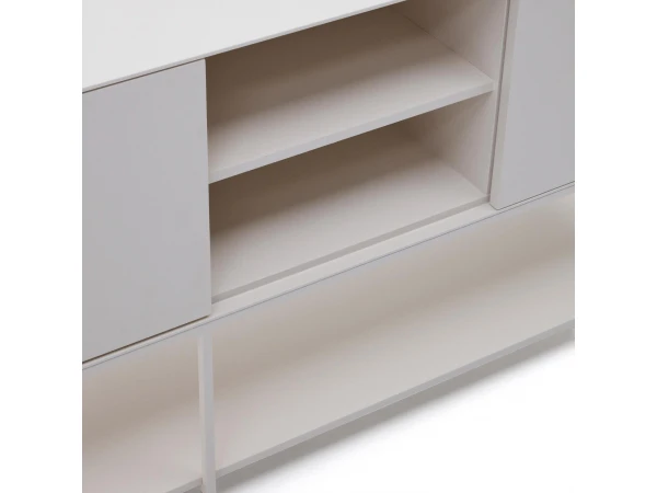 Maak kennis met Tv-meubel Vedrana: een elegant dressoir van MDF met een verfijnde witte lakafwerking. Met zijn 3 push-open deuren en soft-close scharnieren combineert Vedrana stijl met functionaliteit. De verstelbare stalen poten, met een matte witte afwerking, voegen een eigentijdse touch toe aan dit meubelstuk. Bovendien draagt Vedrana bij aan een schonere planeet dankzij het gebruik van E0 geproduceerd hout met een lage uitstoot van formaldehyde, zonder schadelijke stoffen. Voeg Vedrana toe aan je interieur voor een vleugje moderne elegantie!