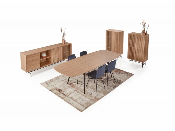 Dunes is een prachtige collectie eetkamer meubelen uit houtfineer met fijne, zwarte metalen pootjes. Deze eetkamer meubelen hebben een warme, elegante uitstraling en passen perfect binnen hedendaagse woonstijlen. Een modern landelijke eetkamer met dat tikkeltje meer!