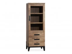 Deze hoge en smalle vitrinekast biedt met 3 schapjes en 3 laden zowel opbergruimte als uitstalmogelijkheden. Deze hedendaags landelijke vitrine kun je vullen met enkele mooie stukken decoratie om er een prachtige blikvanger van te maken.