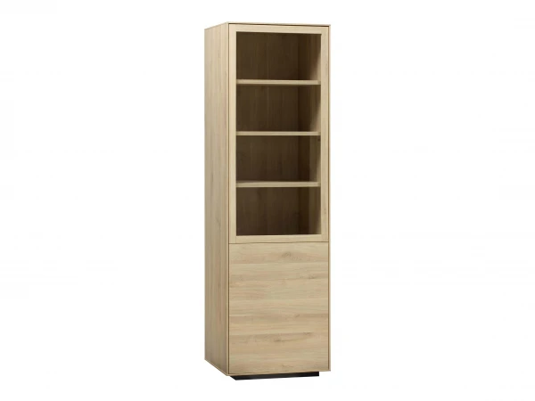 Deze moderne vitrinekast Elegance heeft 1 glasdeur en 1 houten deur, en biedt je extra opbergruimte. De deuren zijn voorzien van een push-systeem, wat zorgt voor extra gebruiksgemak. De serie Elegance van Maxfurn is vervaardigd uit Lamulux in de kleur ‘Fresh oak’ met elementen in Ivory die zorgen voor een stijlvolle en speelse toets. Lamulux is sterk, hard en nauwelijks gevoelig voor krasvorming. Door de aangebrachte houttekening- en structuur heeft het dezelfde karakteristieken van massief hout, met als voordeel dat het gemakkelijker is in onderhoud.