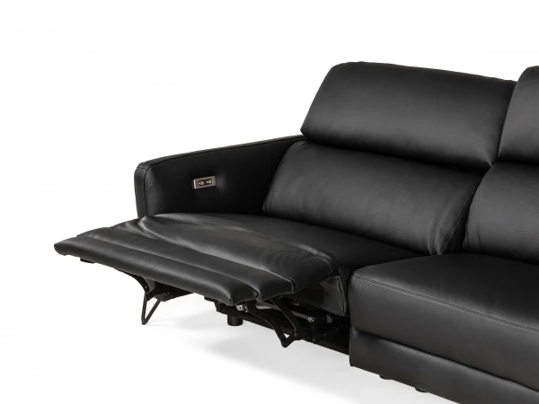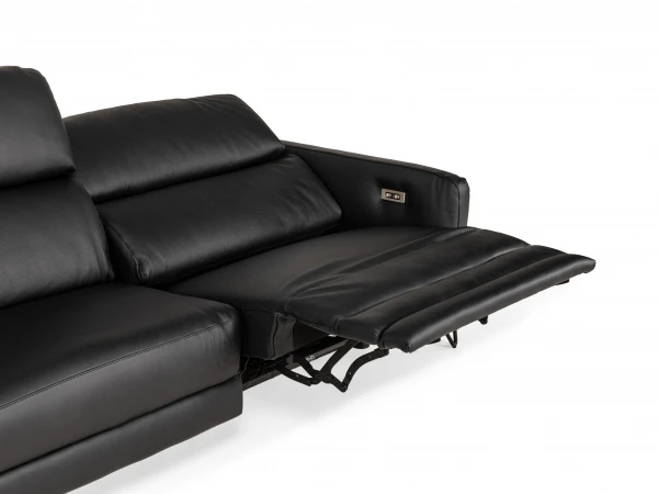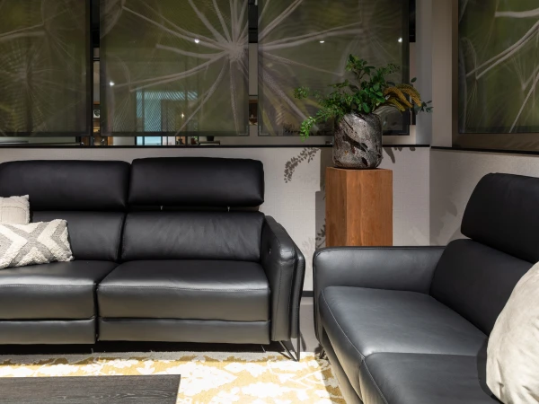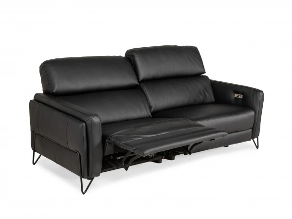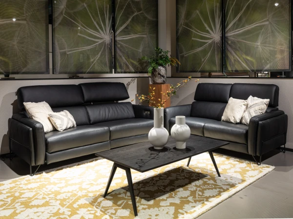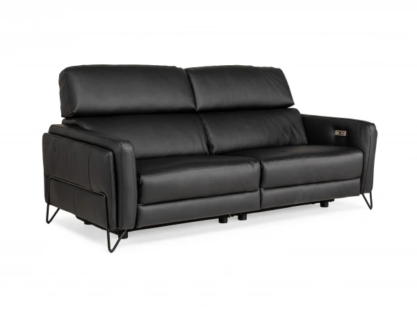 Deze zetel Amplitude bestaat in 2 varianten: een 2-zit en een 3-zit met elektrische relaxen. De stijlvolle zwarte zetels staan op moderne zwart metalen poten. Deze 3-zit heeft aan weerskanten een elektrische relax en verstelbare hoofdsteun voor ultiem comfort. Zie jij jezelf hier al in relaxen?