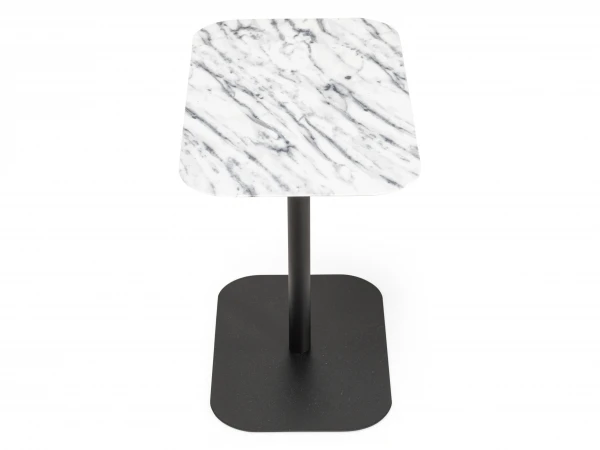 - Materiaal: stalen tafelblad met een wit marmeren folie