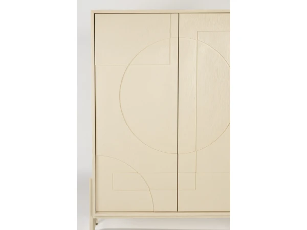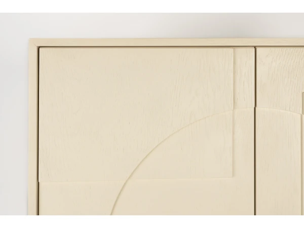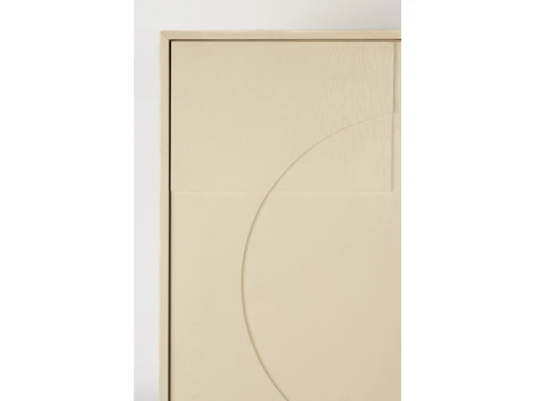 Ontdek de intrigerende Faces opbergkast van Zuiver, geïnspireerd door de fascinerende kenmerken van een gezicht. Ontwerper Jette Scheib brengt met haar ontwerp de nuances in licht en schaduw tot leven. De grafische reliëfdeuren nodigen uit tot aanraken en veranderen met de lichtinval gedurende de dag. Faces is niet alleen een visuele blikvanger, maar biedt tevens praktische opbergruimte. Met massief eiken deuren en een omlijsting van eiken fineer straalt deze kast karakter uit. De hoge metalen poten geven een luchtige touch aan het geheel. Kies voor de Faces opbergkast en voeg een vleugje kunstzinnigheid aan je interieur toe!
